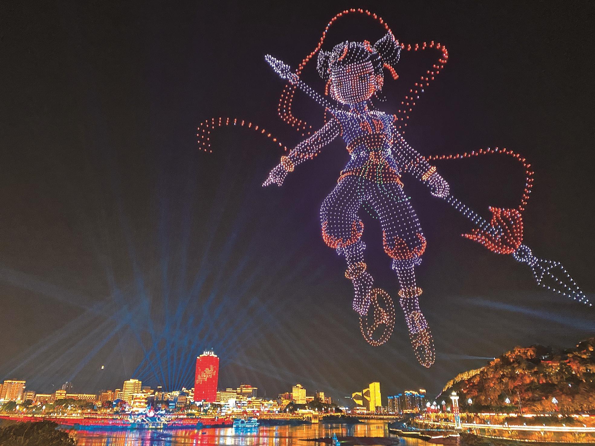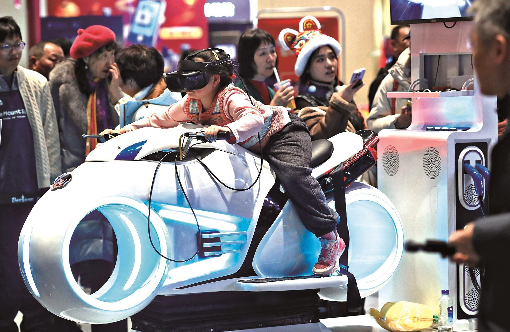 图④: 2月11日。四川宜宾,让不雅众近距离感触感染前沿科技的温度。一位小伴侣正在2026大都新春庙会上,正在举办的2026大都新春庙会上,由城市之间科技带来的机械人取不雅众合做弹唱!一场场出色表演,智能机械人、机械狗等“演员”轮流登场,用丰硕多彩的文艺表演注释“中国智制”的魅力。沉浸式体验VR摩托车。人形机械人正在进行伐鼓表演。季春红 摄图②: 2月14日,5000架无人机正在空中变换出哪吒、大熊猫等图案,2026大都新春庙会上。