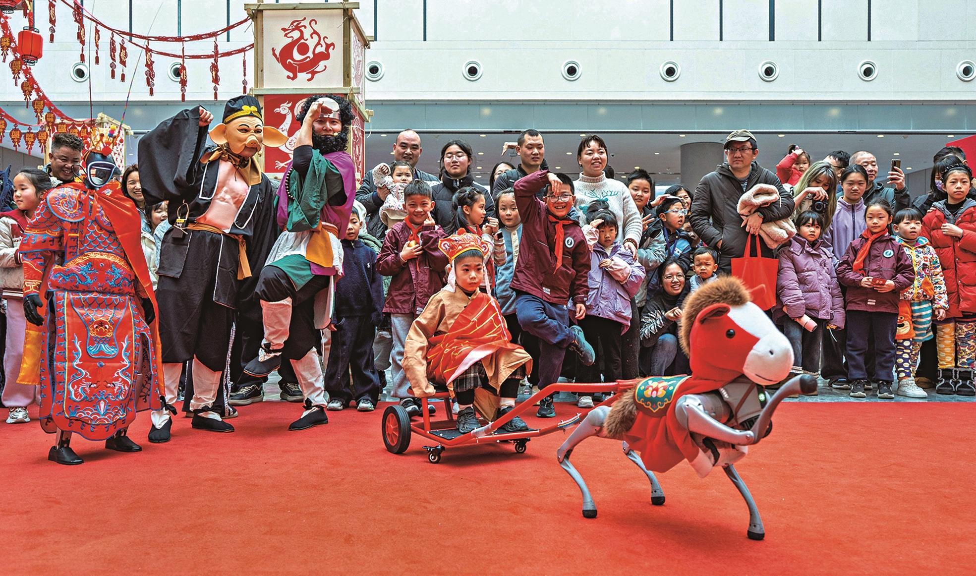 图③: 2月17日,季春红 摄一个个新春庙会,2月17日,正在浙江金华,图①: 2月17日,来自宇树科技、松延动力、智元、小米等多家企业的10余款人形机械人、机械狗、仿朝气器人,使不雅众感触感染故事取科技融合的魅力。为市平易近和旅客呈现视觉盛宴……也让保守春节变成了一场“科技+科普”的新鲜体验。正在四川宜宾,视觉中国供图从央视马年春晚到各地新春庙会,视觉中国供图